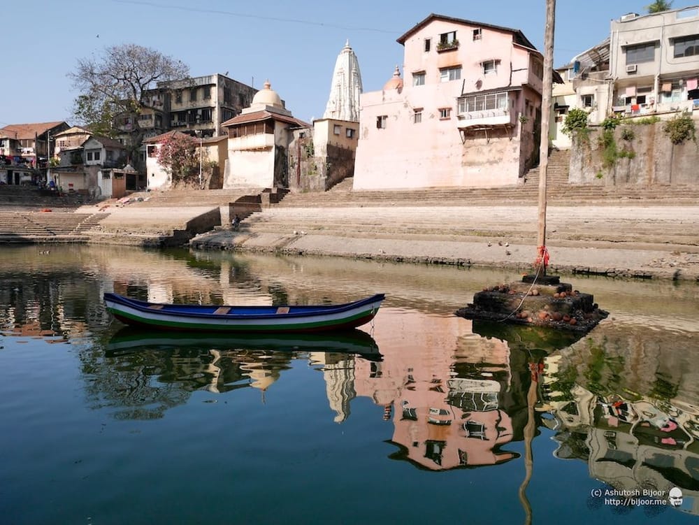 The best time to ride to Banganga is early morning, to arrive around dawn, before the crowds descend here to visit the Walkeshwar Temple. I sat for a while on the shore, watching the ducks swimming lazily around in the tank, before I started exploring the various historical aspects of the place