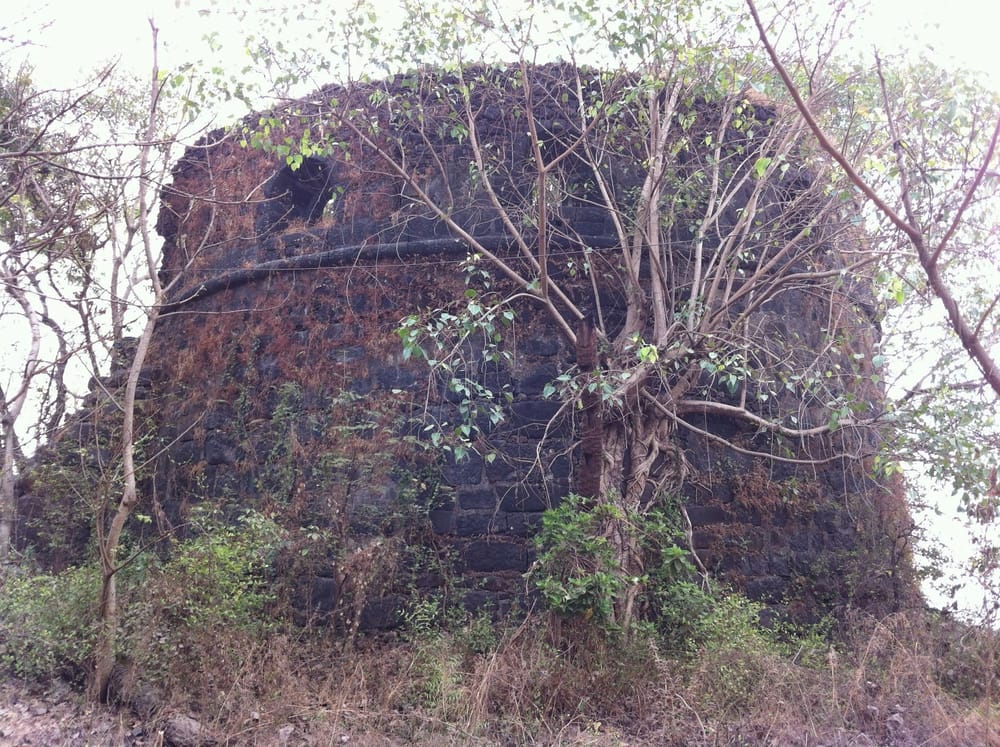 The only remaining vestige of the fort is a bastion that lies at the top of a small hill. There is no proper path to climb the hill and one has to find one’s way through thorny bushes.