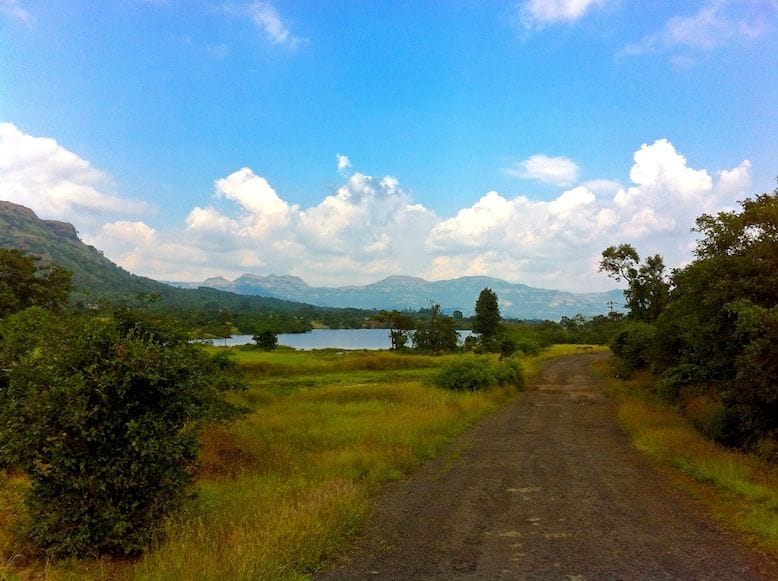 We soon caught sight of Mulshi lake reflecting the blue sky in the waters